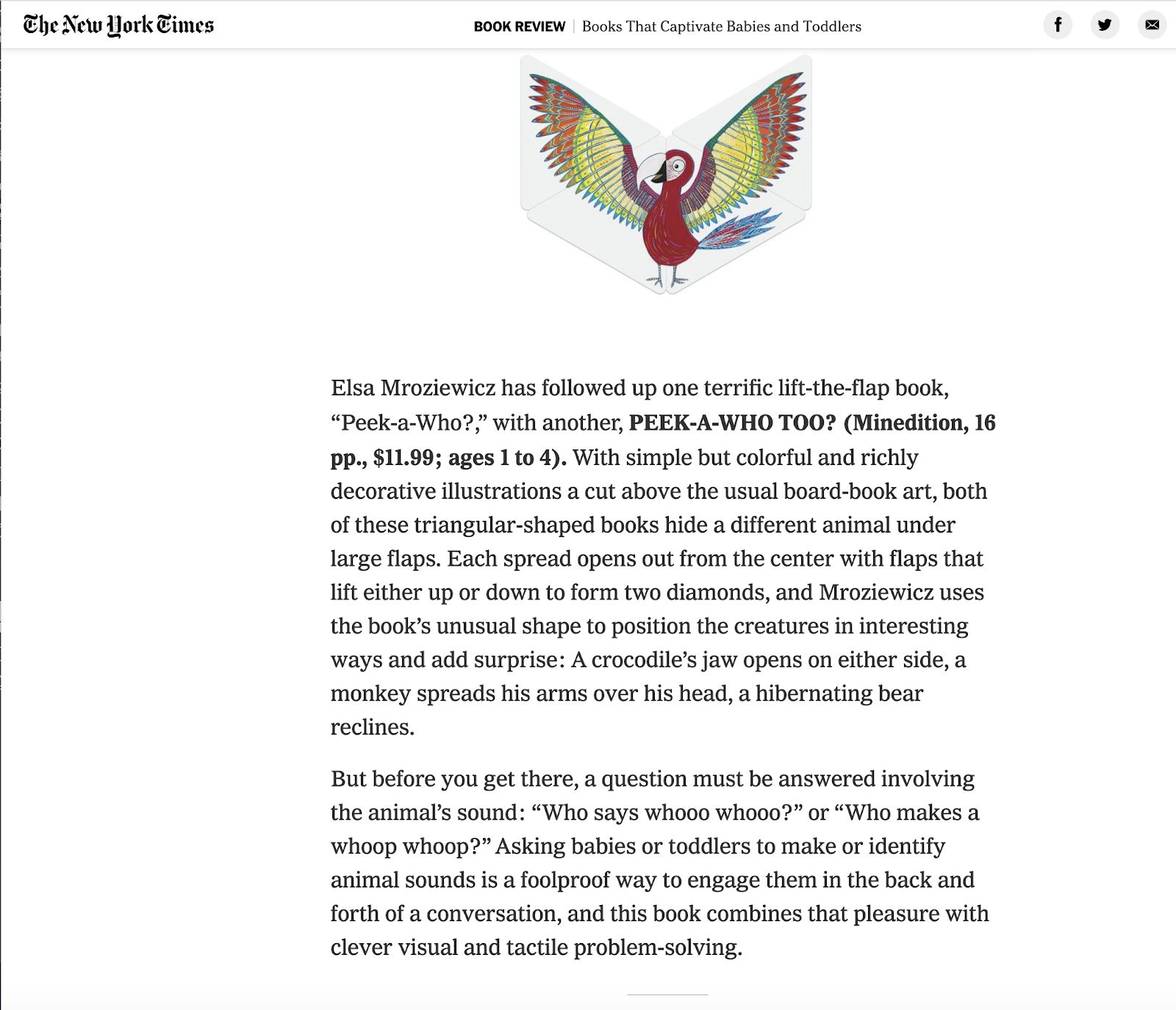 2019 : Best Kid’s Books 2019 : Parents magazine et article dans The New York Times : Books That Captivate Babies and Toddlers