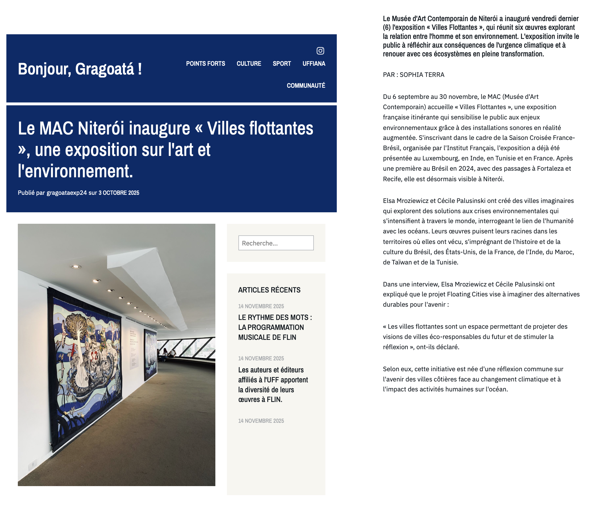 Alô, Gragoatá! Niteroí (RIO) : https://alogragoatauff.wordpress.com/2025/10/03/mac-niteroi-inaugura-cidades-flutuantes-mostra-sobre-arte-e-meio-ambiente/
