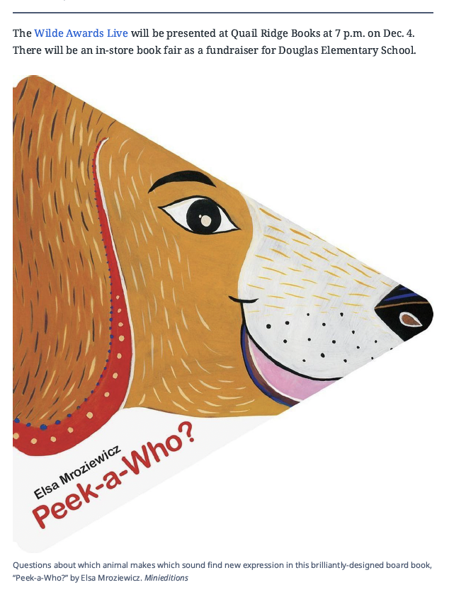 2018 : Classement de Peek-a-Who? parmi les meilleurs livres jeunesse 2018 aux États Unis dont : Children’s Books: Best of 2018 du Wall Street Journal